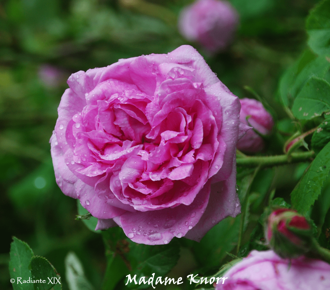 ‘Madame Knorr’ appears to be widely available in Europe, also Australia, and New Zealand. She appears to be grown in the States but quite how widely I am not sure. Do comment on this point. There are references to her being identical to ‘Comte de Chambord’ aka ‘Madame Boll,’ or rather sold under the wrong name. Comments again are helpful.